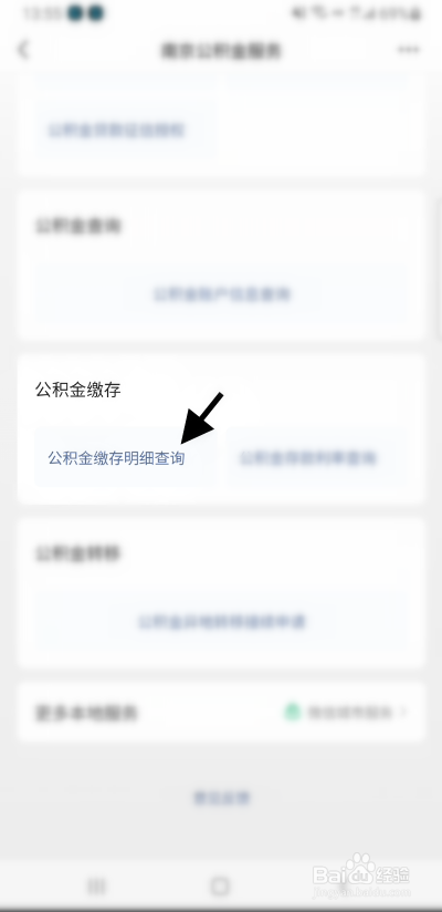 进入找到公积金缴存点击公积金缴存明细查询选项。
