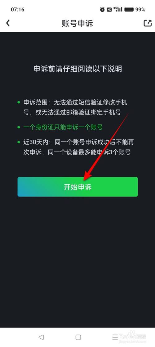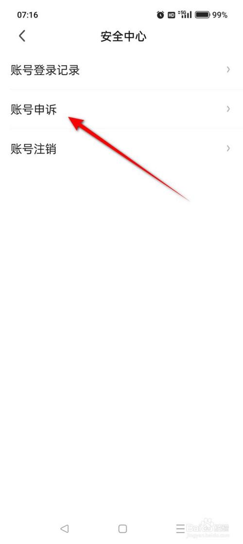点击“账号申说”。