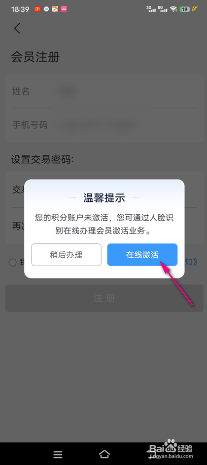 输入小我私家姓名,手机号以及生意业务密码。