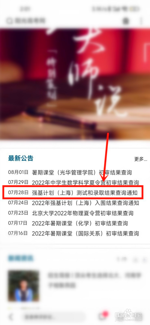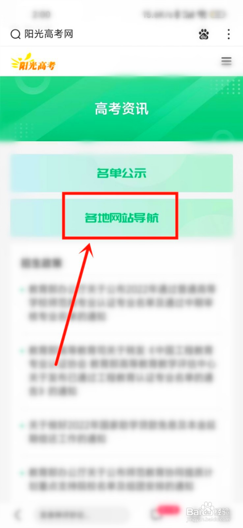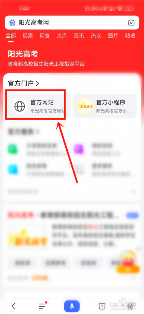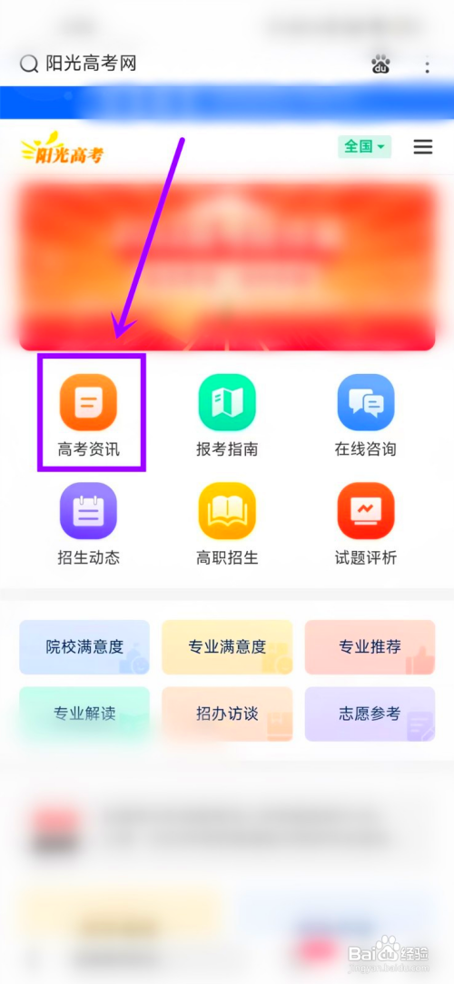 打开百度,搜刮“阳光高考网”,打开官方网站。