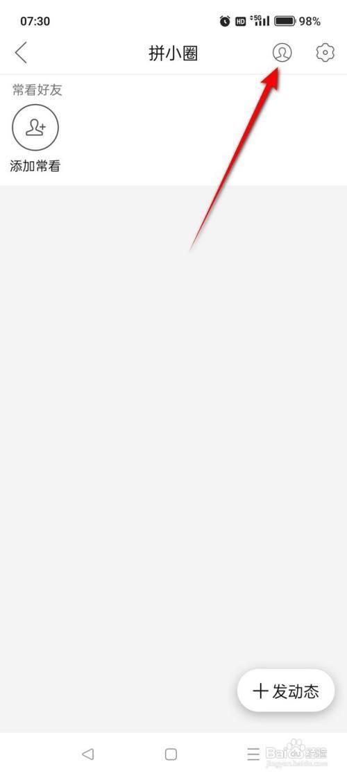 打开拼多多首页,点选“保举”,点击“拼小圈”图标进入。