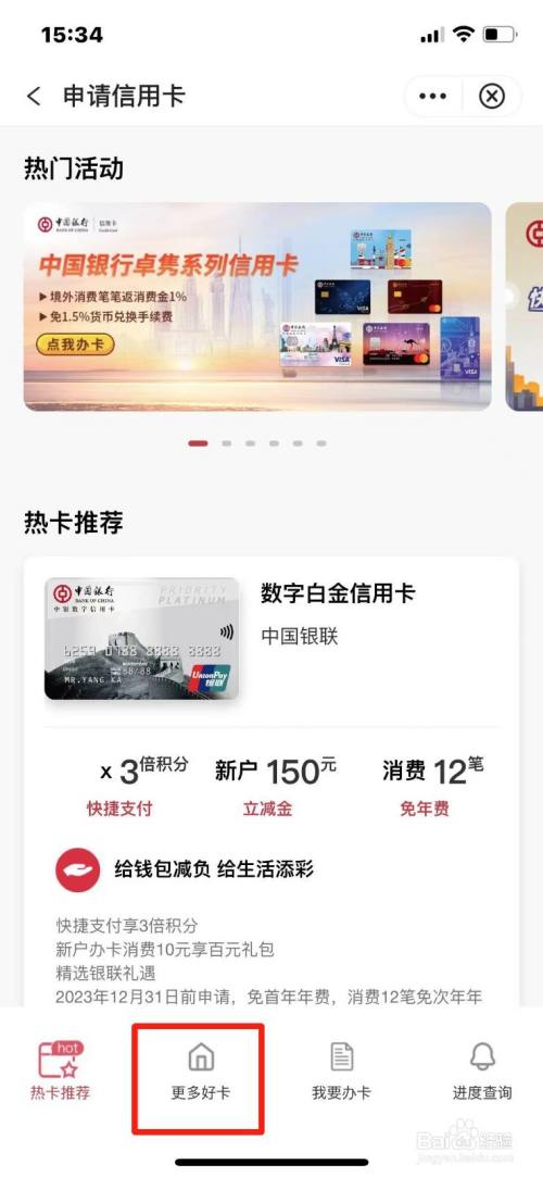 在申请信用卡页面点击【更多好卡】。