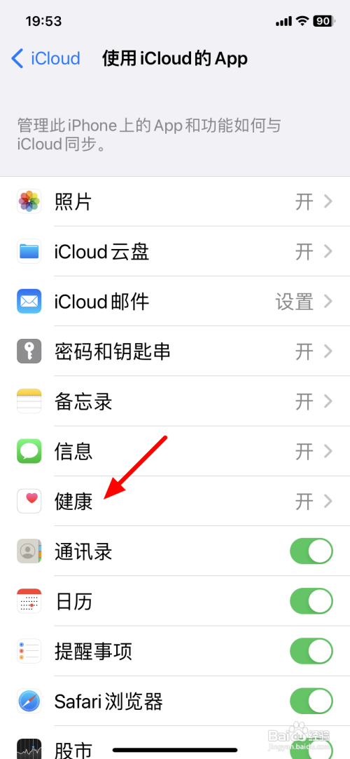 步调四:接着,点击要封闭的同步选项,以康健为例。