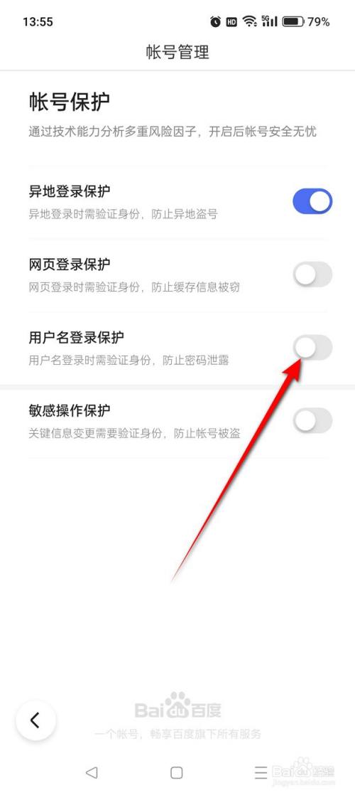 将“用户名登录掩护”旁的小滑块点亮即可封闭。