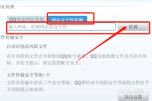 点击【网站安全性检测】,输入我们要检测的网站,点击【检测】,如图。这样,就可以知道这个网站安不安全啦~
