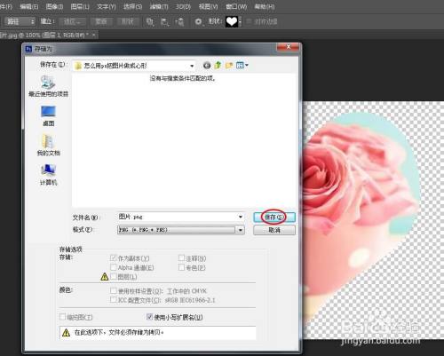 第六步:利用生存快捷键Ctrl+S键,将心形图片生存为png格局,完当作操作。