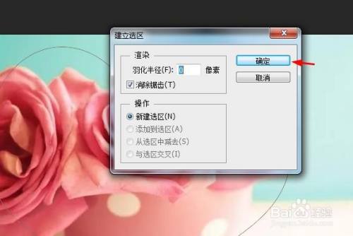 第四步:在“新建选区”对话框中,成仙半径设置为0,单击“确定”按钮。