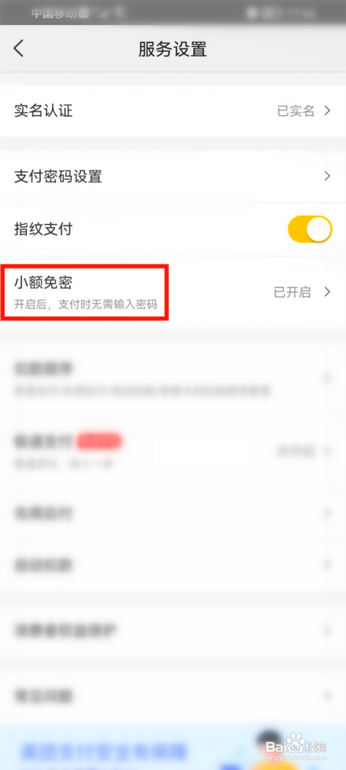 点击“小额免密”。