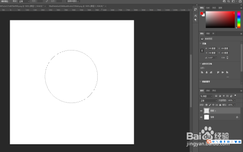 鼠标回到事情区,按住Shift的同时拉动鼠标,获得一个正圆选框。