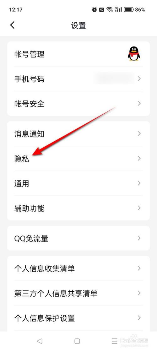 点击“隐私”。