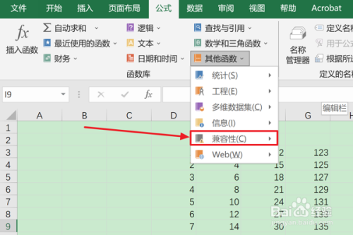 在“函数库”组中,点击“其他函数”下拉号令。