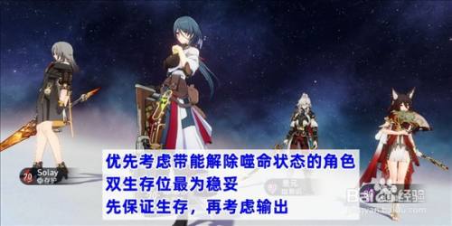 保存位优先思量能排除噬命状况的脚色,好比罗刹和娜塔莎,然后再搭配一个存护脚色,好比杰帕德或者火本家儿,双保存位是面临幻胧最稳妥的选择。剩下的两个位置留给练度最高的输出和辅助脚色,思量到幻胧和玄莲的弱点属性,雷、风和虚数属性的输出脚色会更占上风,好比景元和刃。