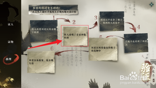 工具/原料机械革命 绝代16 ProWindows 11逆水寒手游 1.1方法/步骤1程大虎要刘老夫用金镯子抵债。2程大虎喝了有安神散的酒。3刘老夫子夜拿了镯子,塞到程大虎家中。4蓝嫂子夜看到了刘老夫。5刘老夫使用偷来的鞋子伪造脚印。6刘老夫来报案,说金镯掉窃。7按挨次摆列完当作后,点击验证即可。END