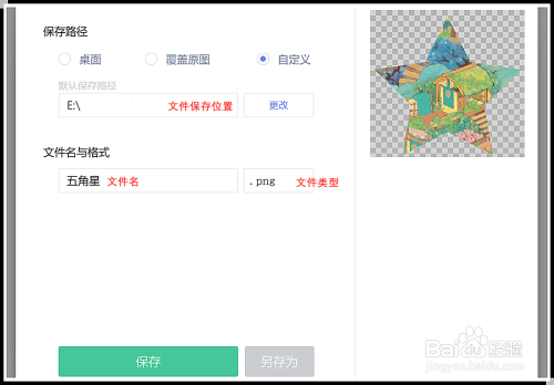 图片修改完当作后,点右上角“生存”,选择生存路径、修改文件名和类型生存即可。