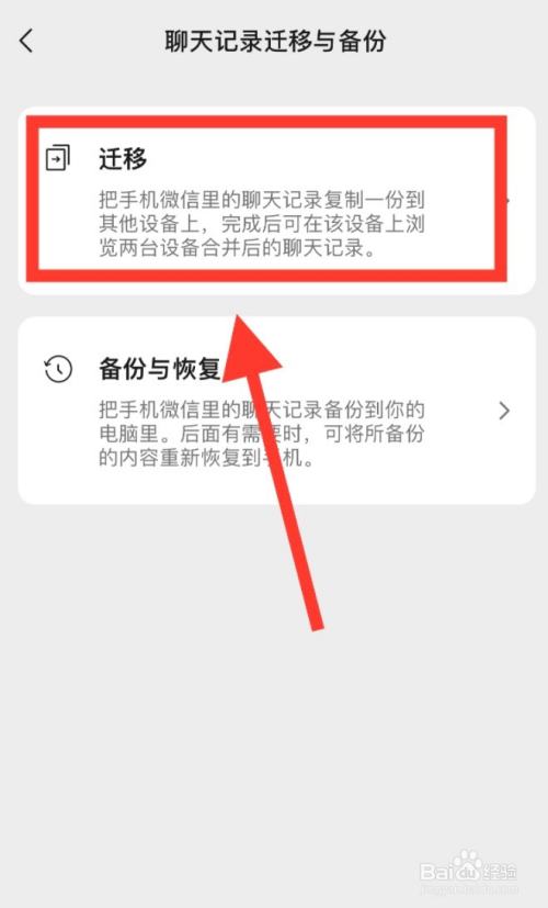 然后找到【谈天记载迁徙与备份】。