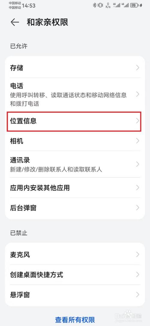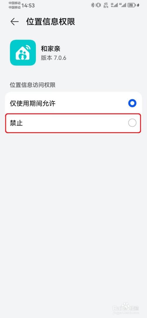 在位置信息权限页面,选择【克制】和家亲拜候位置信息。