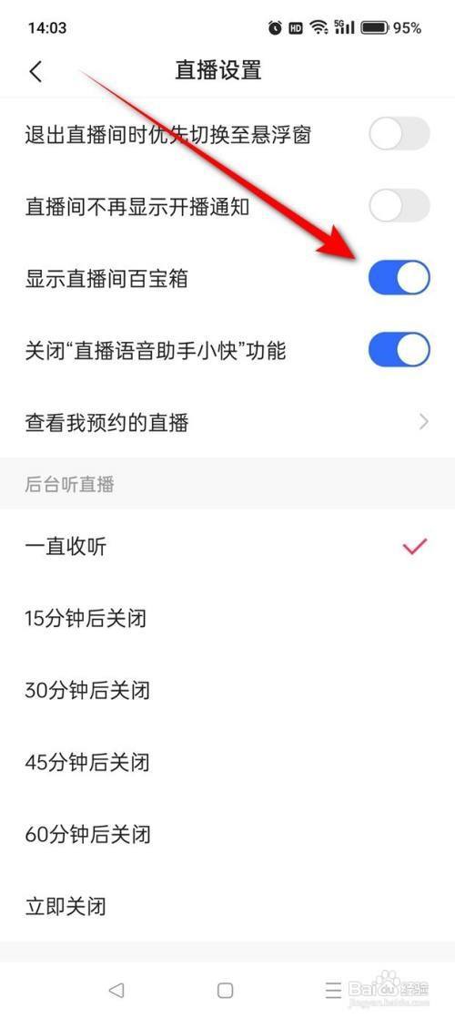 将“显示直播间百宝箱”旁的小滑块点亮即可开启显示。