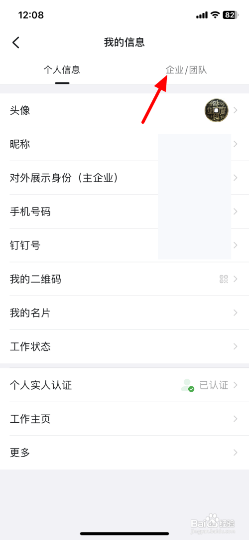 在我的信息界面,单击企业/团队。