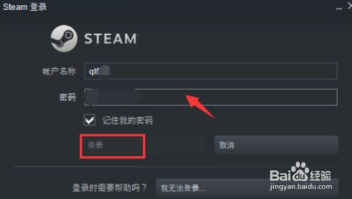 第二步:进入登录界面,输入您的steam账户和密码登录,如下图所示: