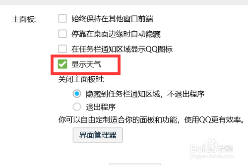 点击【显示气候】,如图。框框酿成绿色就是暗示气候显示这个功效开启乐成了哟~
