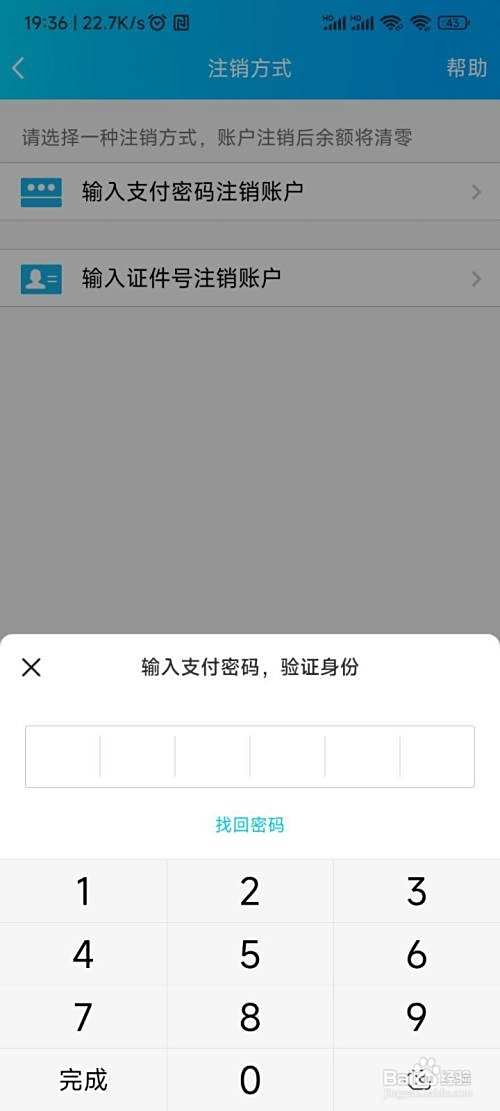接着,以输入支付密码刊出账户为例。