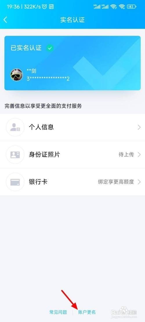 进入后,点击账户改名。