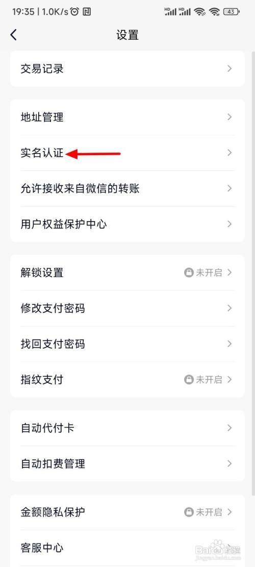 在设置界面,单击实名认证。