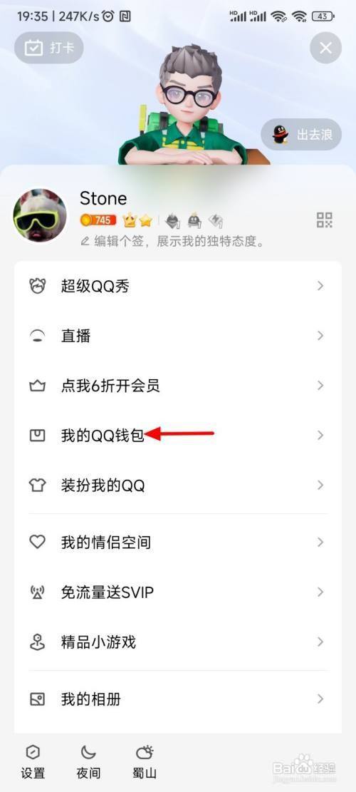 在菜单界面,打开我的QQ钱包。