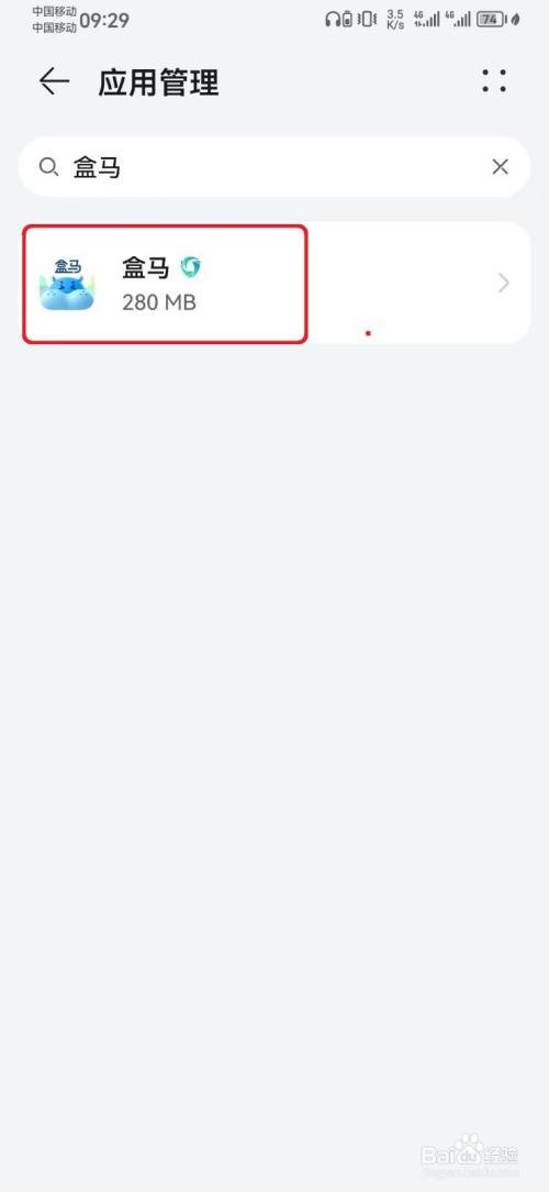在应用办理页面,搜刮选择【盒马】应用。
