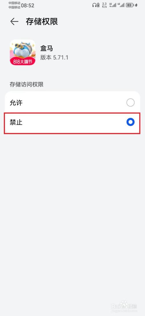 在盒马权限页面,选择【存储】选项。