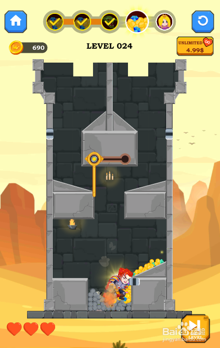 这个关卡的少年站在哥布林的左上侧,使命是得到宝藏,环境如图。