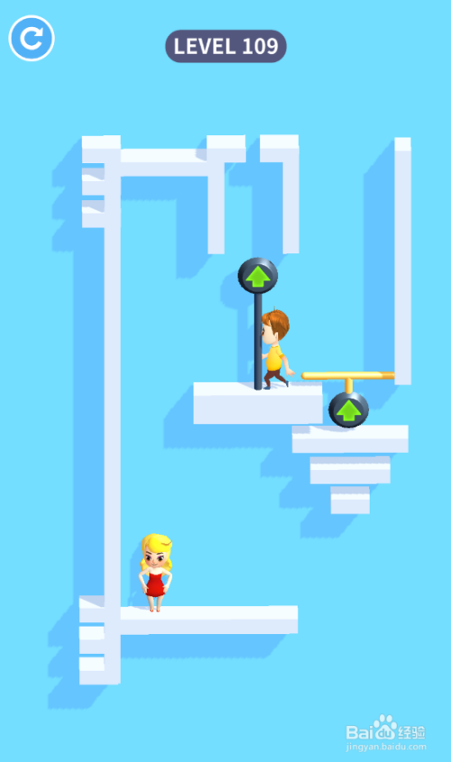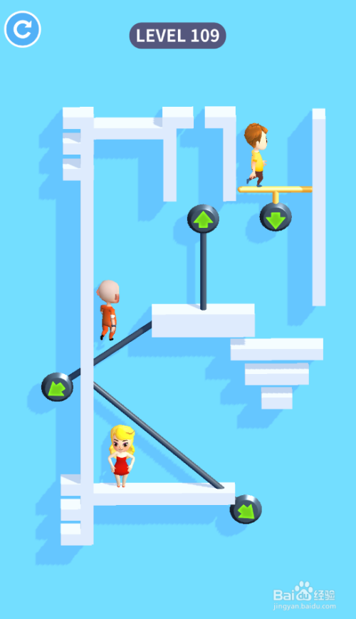 这一关的使命是解救底部的女孩,内里有四个拉针和一个推拉杆,环境如图。