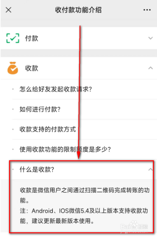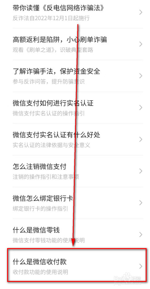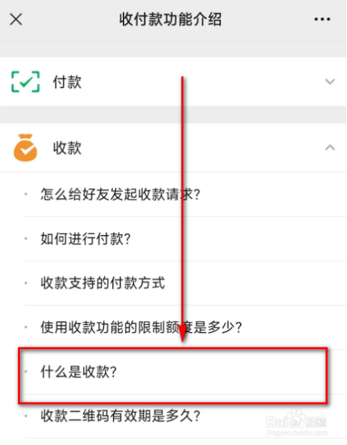 7.进入到消用度者教诲页面后,点击: 什么是微信收付条目。