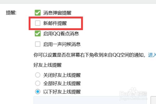 点击【新邮件提示】,如图这样,框框酿成灰色,则暗示我们封闭该功效了哦~