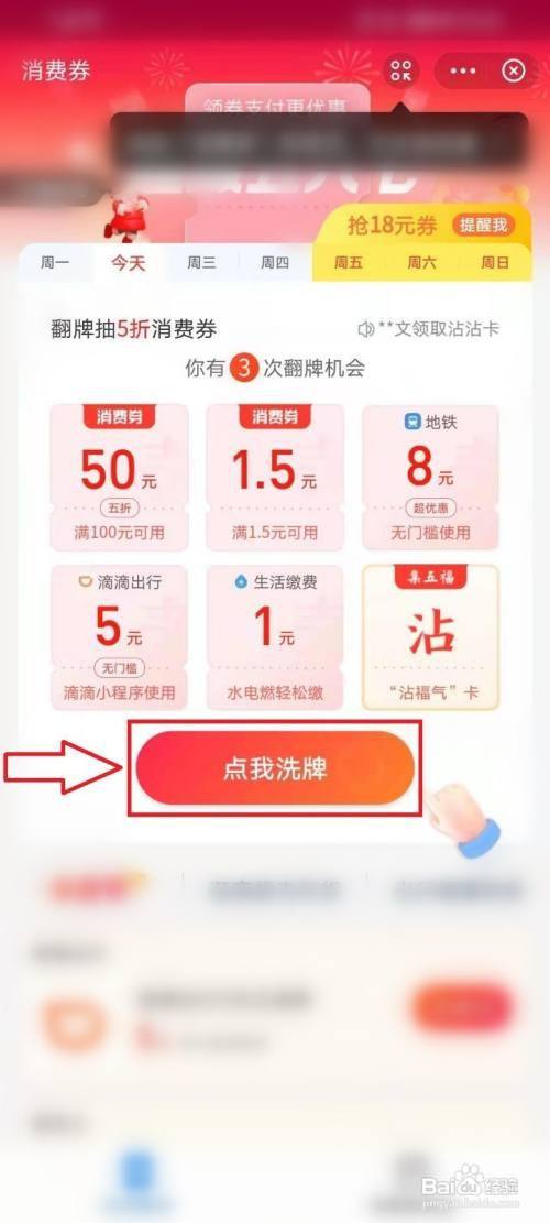 随便点击一个”翻“字,举行翻牌,就有时机得到沾福分卡。