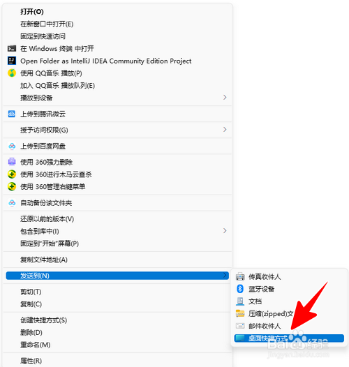 在睁开的菜单中点击“发送到”-“桌面快捷方式”。