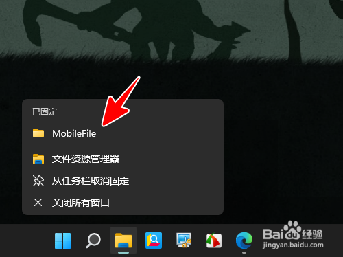 这时,我们在使命栏上的文件夹图标处右击,就可以看到方才固定的文件夹了。