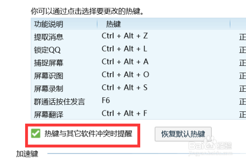 点击【热键与其他软件冲突时提示】,如图。框框是绿色的,这样就是开启提示乐成了哦~