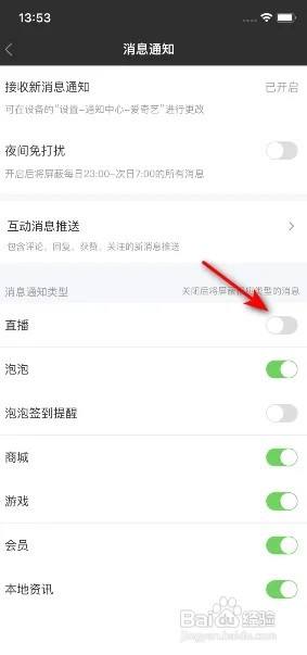 之后将直播的滑动按钮标的目的左滑动。
