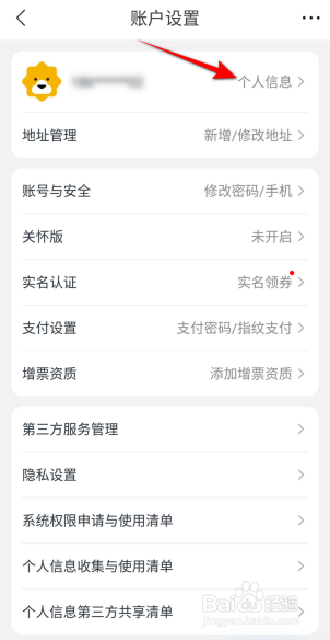 然后点击小我私家信息选项。