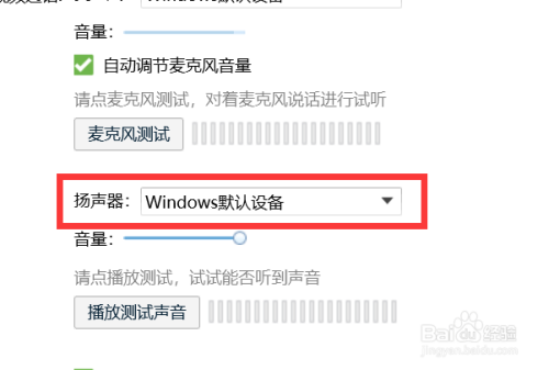点击【扬声器:Windows默认设备】,如图。这样,我们就把通话的扬声器设置为Windows默认设备了哦~