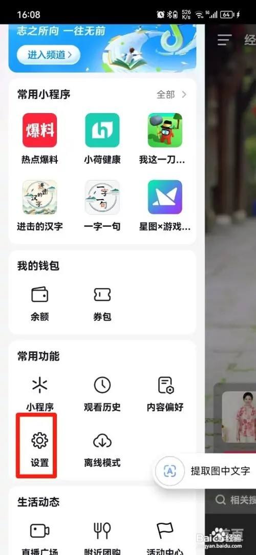 如下图所示。 我们进入跳出的页面,点击【设置】,进入页面内。