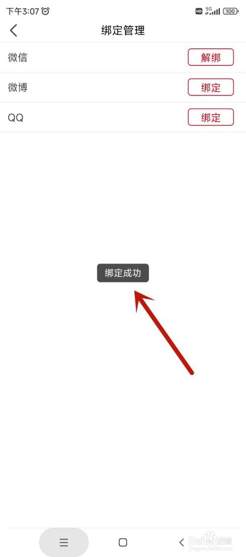 许可申请后,返回绑定办理页面,页面提醒绑定乐成,即暗示微信账号已经绑定乐成。