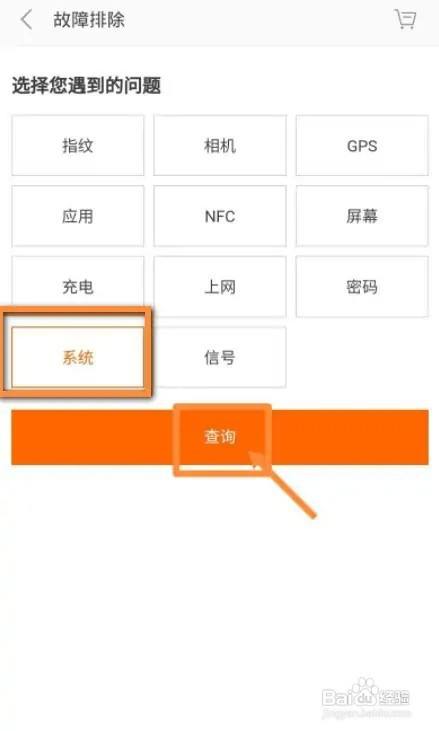 第五步,选择碰到的问题,这里选择体系,然后点击查询如图所示