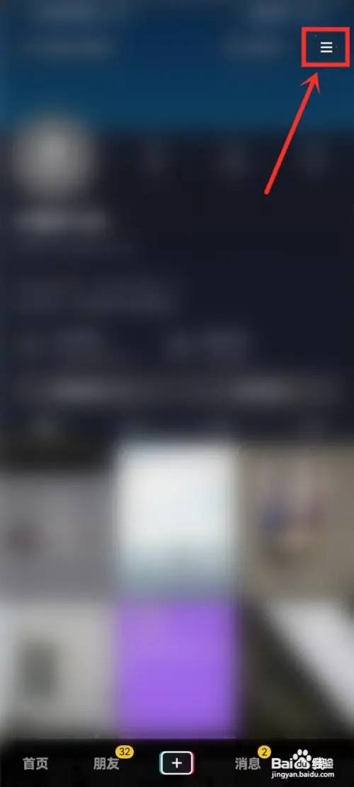 END打开抖音小我私家本家儿页,点击右上角【三横】图标。