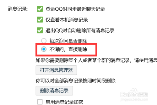 点击【退出QQ时主动删除所有动静记载】,如图。