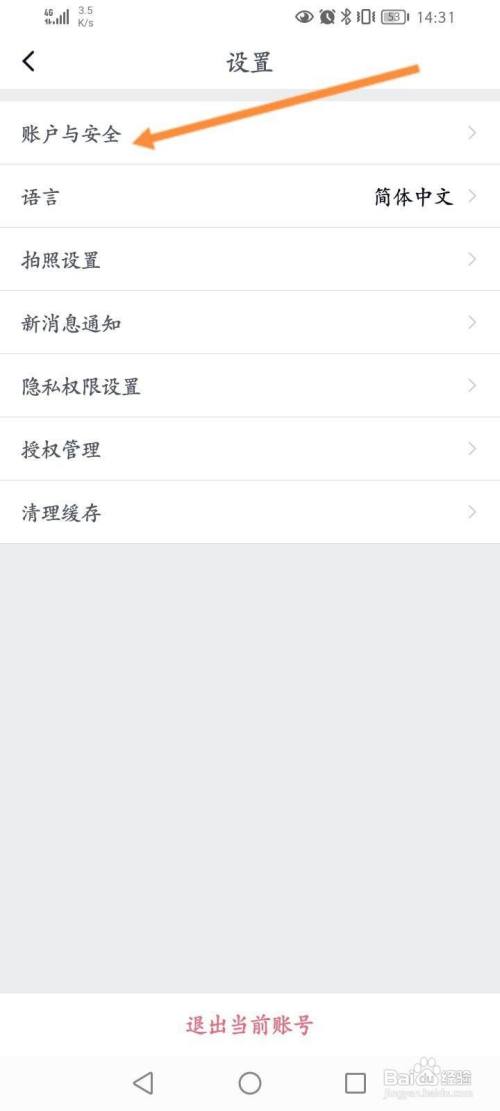 点击上面的账户与安全选项。