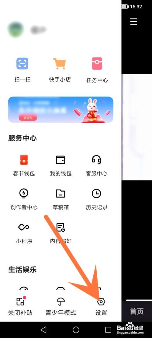 1、选择手机上快手APP,选择三条杠。
