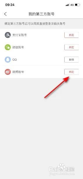 然后点击微博账号后面的绑定,之落伍行绑定即可。这样便完当作了微博账号的绑定。