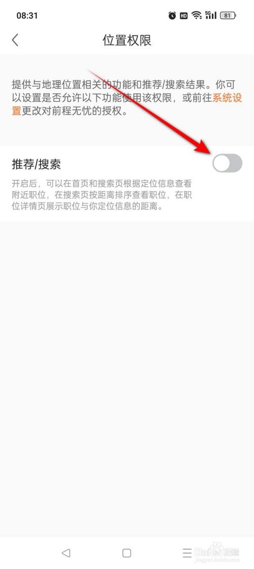 当“保举/搜刮”旁的小滑块处于点暗状况时即暗示此时该功效处于封闭状况,点击小滑块。
